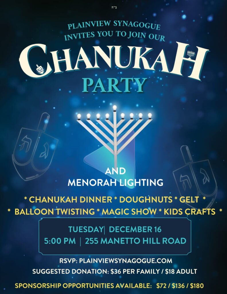 Chanukah party is free of charge. *Suggested donation of $36 per family / $18 Adult. *Partner with us to help support our Chanukah Program! $72 / $108 / $180 / $360